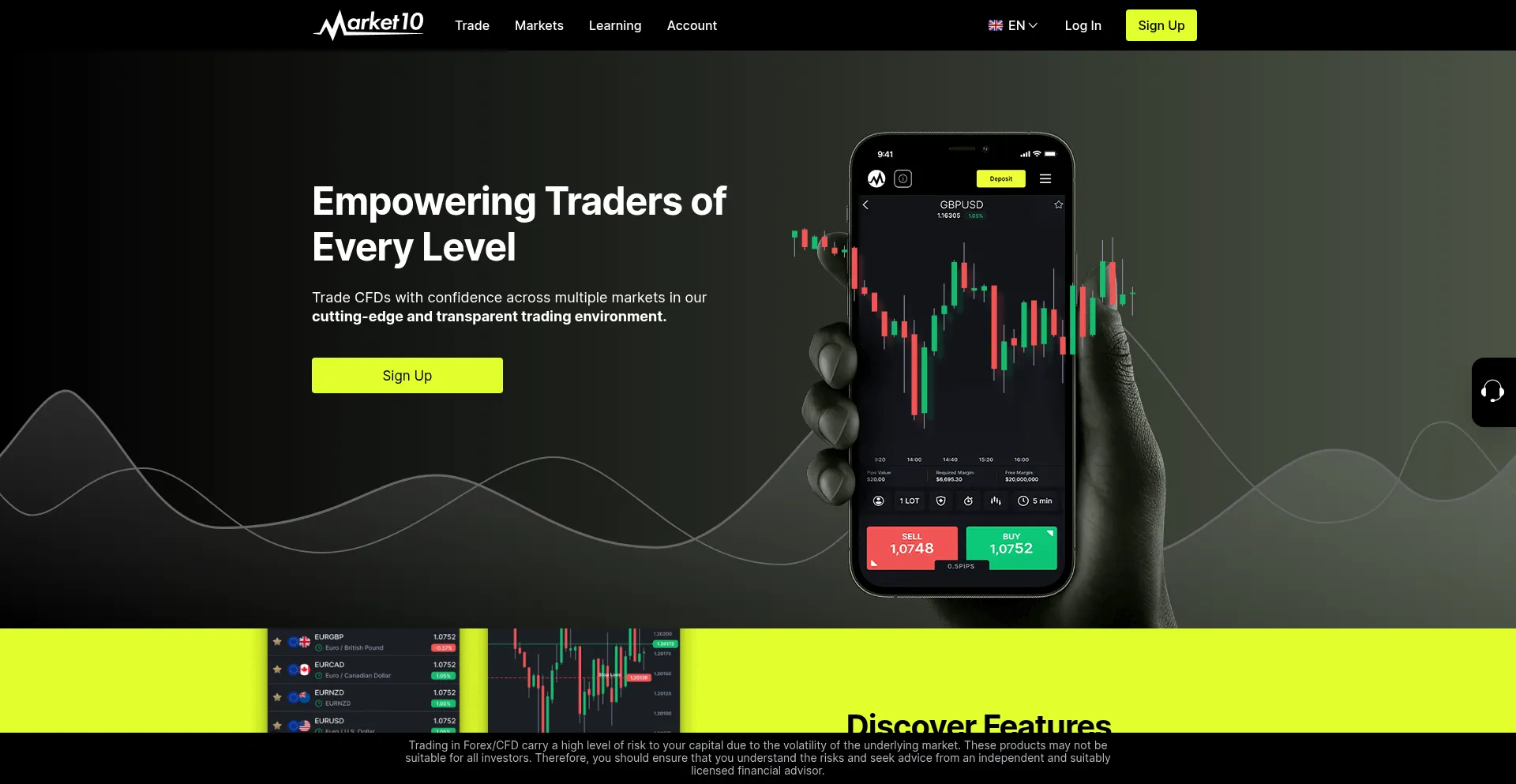 تعد Market10 منصة تداول عبر الإنترنت تعمل بواسطة شركة Faraz Financial Services (PTY) Limited، وهي شركة مرخصة ومنظمة من قبل هيئة السلوك المالي (FSCA) في جنوب أفريقيا. تتخصص المنصة في تقديم عقود الفروقات (CFDs)، مما يتيح للمتداولين المضاربة على مجموعة واسعة من الأسواق المالية، بما في ذلك أزواج العملات والسلع والمؤشرات، دون الحاجة إلى امتلاك الأصول الأساسية. مع واجهة مستخدم سهلة الوصول وأدوات تداول متقدمة، تهدف Market10.net إلى توفير بيئة تداول آمنة وشفافة للمتداولين في جميع أنحاء العالم.